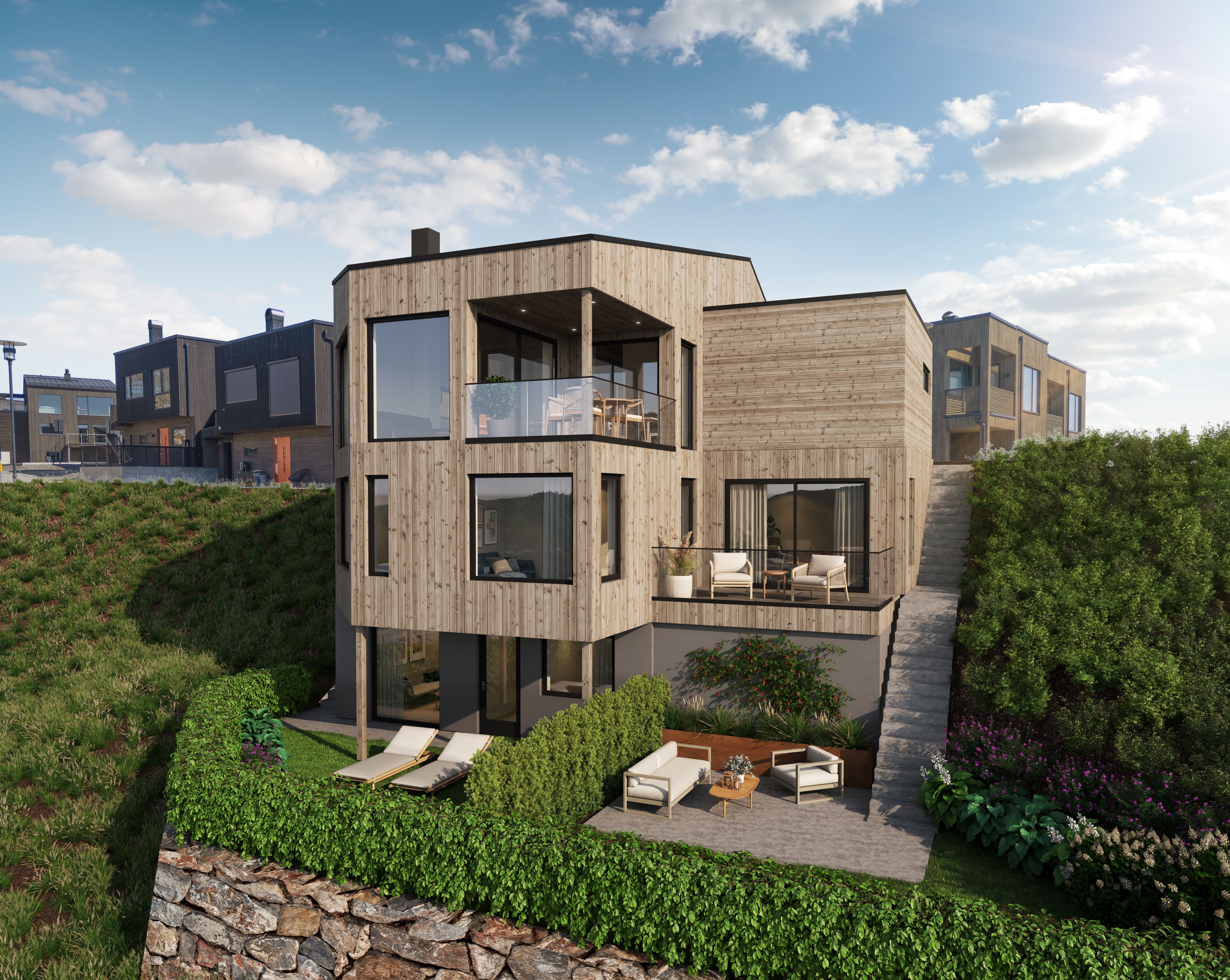 Prosjekterte, vertikaldelte boliger på solrike utsiktstomter- garasje - meget barnevennlig i blindvei. 2 vertikaldelte og innholdsrike familieboliger på Drangsvann. Disse flotte tomtene ligger øverst i nyere byggefelt - vestvendt og meget solrikt - barnevennlig i blindvei - utsikt- naturskjønne omgivelser og nydelig turterreng i umiddelbar nærhet - leveres nøkkelferdig og med garasje.